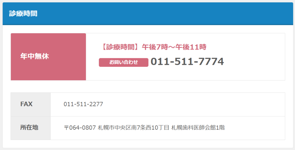 札幌市では札幌歯科医師会 口腔医療センターが年中無休で夜間救急歯科診療を行っています。